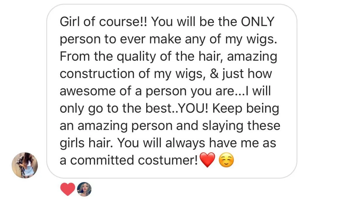 A $15 partial deposit secures your appointment. If you’re purchasing a wig, half the cost of the wig will be required to confirm your booking.